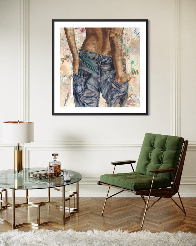 She turns a hallway into something interesting. She makes your living room feel like it has a playlist. She's the artwork equivalent of your favourite broken-in denim — the pair you reach for every single time because they just get you.